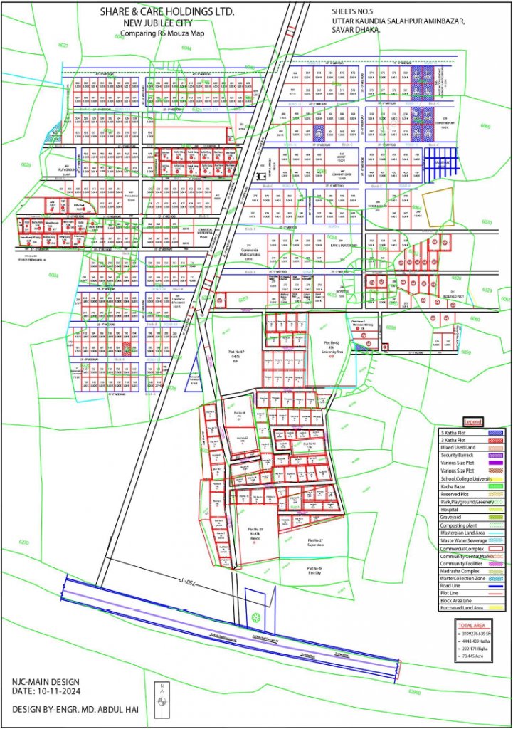 In 2007, Share & Care Group acquired land in Amin Bazar for the “New Jubilee City” project. At that time, the area was predominantly waterlogged with a few brick kilns. Today, the site features an 8-story commercial building and two buildings of the University of South Asia. A new road connecting this block to the university has also been completed.